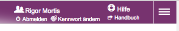 - Klicken Sie im Kopfbereich auf "Kennwort ändern" unter Ihrem Namen. Im Beispiel "Rigor Mortis"