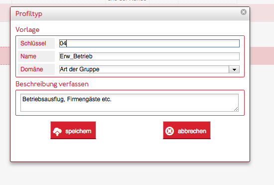 - Legen Sie im Beriech Anwendungseintstellungen→ EventApp→ Profiltyp die neue Fragestellung an und wählen sie die eben erstelle Domäne aus.