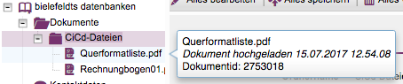 - Lassen Sie sich den Tooltip im Baum anzeigen und notieren Sie die DokumentID