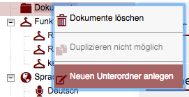 Um einen neuen Ordner anzulegen machen Sie einen Rechtsklick auf das Wurzelelement "Dokumente" ganz oben oder auf den Ordner, in dem Sie einen Unterordner erstellen wollen: