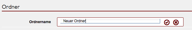 Einen bestehenden Ordner benennen Sie um, indem Sie den Ordner im Baum anklicken und dann im rechten Detailbereich das Label "Ordnername" anklicken.