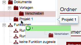 Sie können Ordner über Drag & Drop in der Ordnerstruktur verschieben. Wählen Sie dazu den zu verschiebenden Ordner mit der Maus und ziehen Sie ihn bei gedrückter Maustaste auf den Zielordner.