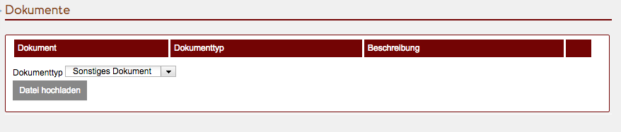 Um Dateien ins System zu laden öffnen Sie den Bearbeitungsmodus für die Dokumententabelle durch einen Klick auf die Überschrift Dokumente.