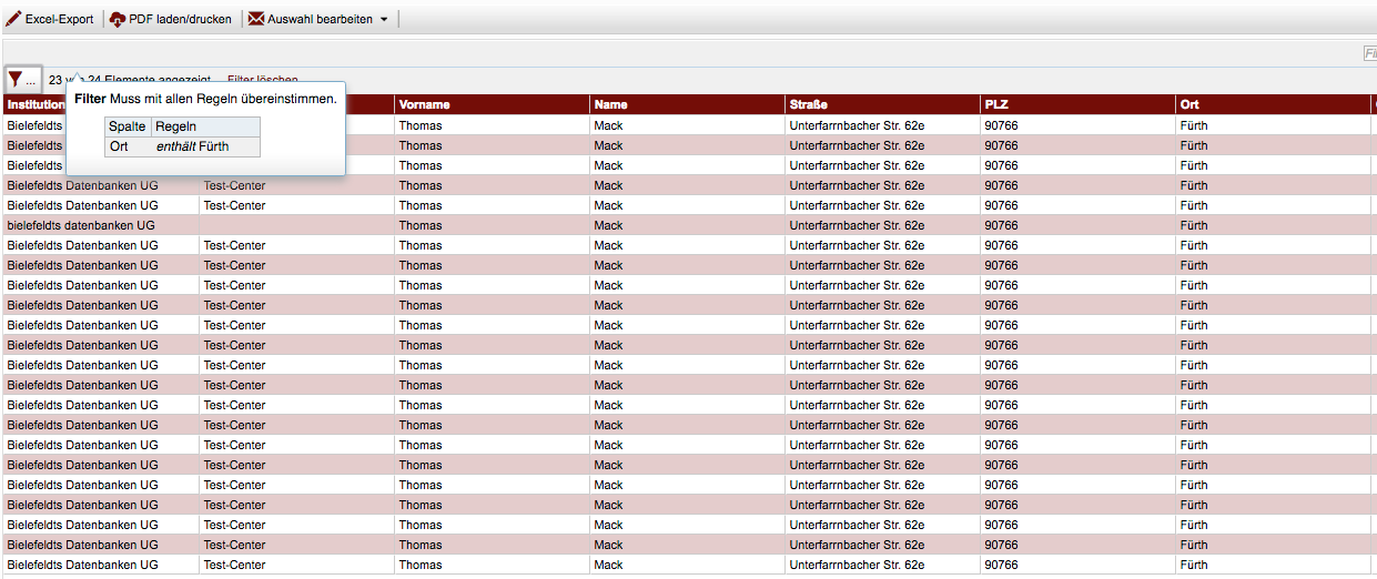 Über das Filter Menü können Sie Tabelle nach belieben Filtern.