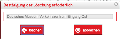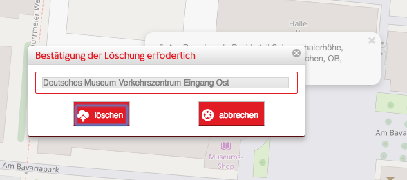 Wenn Sie die Nachfrage "löschen" bestätigen wird der Treffpunkt gelöscht. Diese Funktion sollte nur dann verwendet werden wenn ein Treffpunkt wirklich nicht gebraucht wird. Treffpunkte, die bereits verwendet werden oder wurde können nicht gelöscht werden. In diesem Fall erhalten Sie eine Fehlermeldung die auf diesen Umstand hinweist.